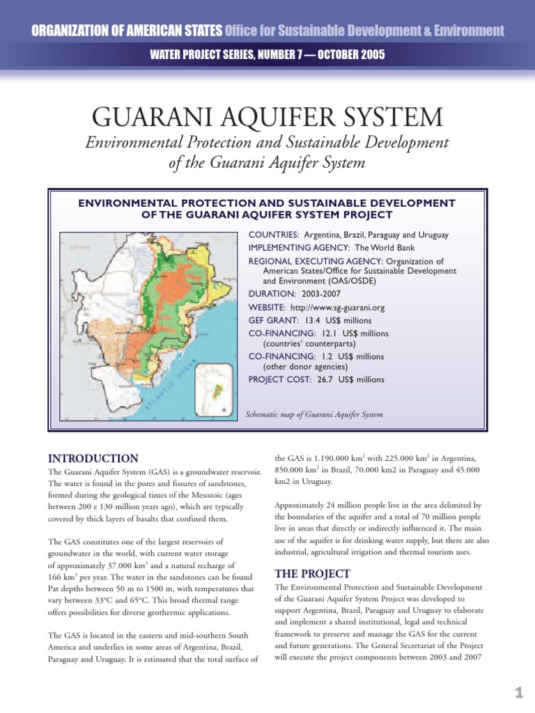 Tacuarembó, in argentina and buena vista/tacuarembó, in paraguay. A short introduction to the many issues that surround the guarani aquifer. It underlies in the territories of argentina, brazil, paraguay and uruguay and it covers an area of 1,087,879 km2. This chapter presents the guarani aquifer system (gas), its location and its characteristics, and discusses its management, since it is located in four countries, argentina, brazil, paraguay. The guarani aquifer system (gas) is a strategic transboundary aquifer system shared by brazil, argentina, paraguay and uruguay.