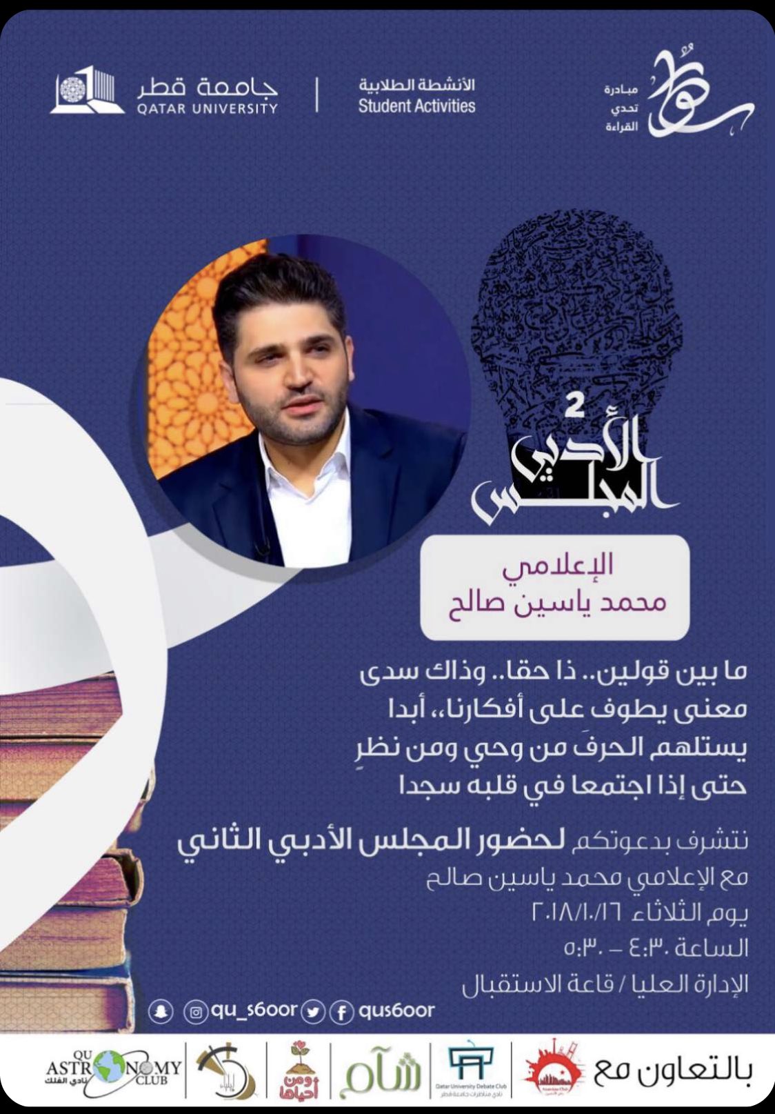 انضم إلى فيسبوك للتواصل مع ياسين صالح احمد محمد وأشخاص آخرين قد تعرفهم. ناهد محمد أنور الأيون الدباغ. ولد في مدينة الرقة عام 1961 ، واعتقل عام 1980 بتهمة الانتماء إلى تنظيم شيوعي ديمقراطي معارض. وحصل محمد ياسين صالح صاحب المركز الأول على 500 ألف ريال قطري، في حين حصلت وصيفة الشاعرة القطرية زينب المحمود على مبلغ 300 ألف ريال، أما صاحبة المركز الثالث التونسية غادة تهميش فحصلت على مبلغ 200 ألف ريال. محمد ياسين صالح موجود على فيسبوك.